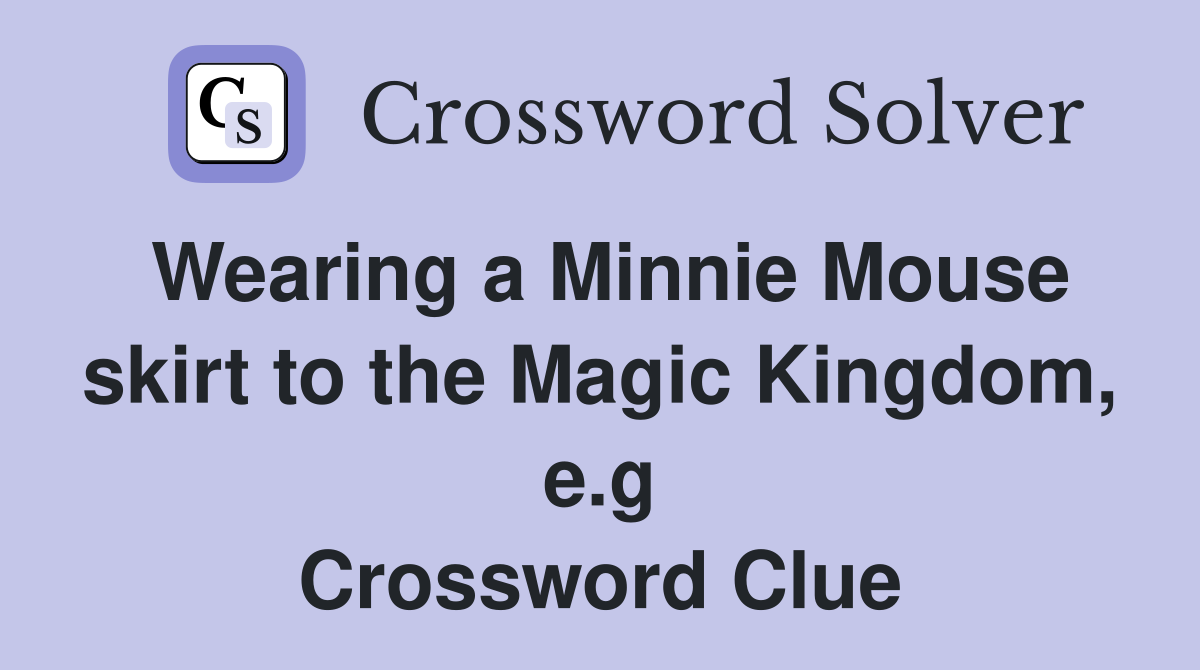 Wearing a Minnie Mouse skirt to the Magic Kingdom e g Crossword