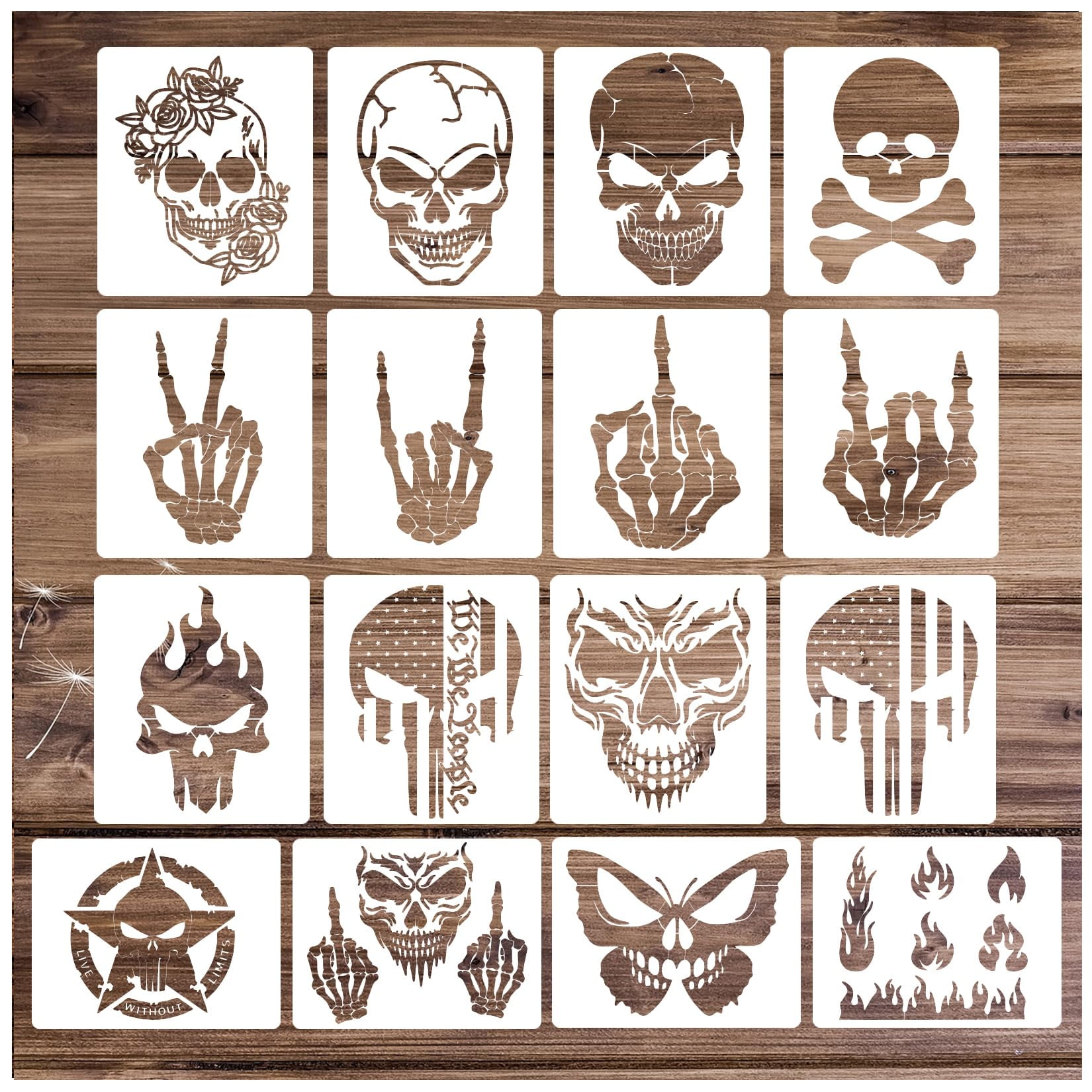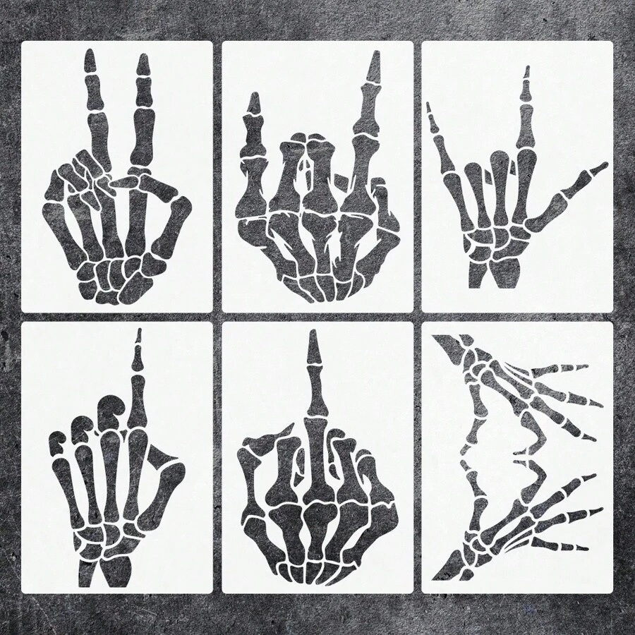 6pcs Skull Stencils For Painting On Wood Flame Skeleton Hand Finger