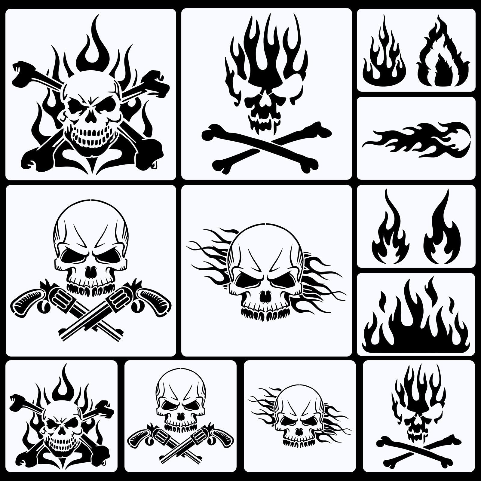 Amazon com : Yanroom Skull Stencils for Painting On Wood Flame Skeleton