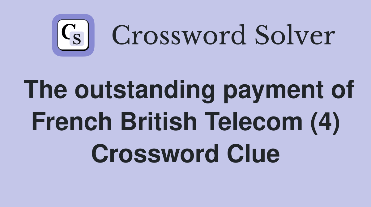 The outstanding payment of French British Telecom (4) Crossword Clue
