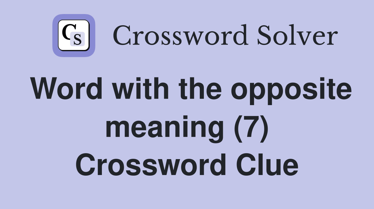 Word with the opposite meaning (7) Crossword Clue Answers Crossword