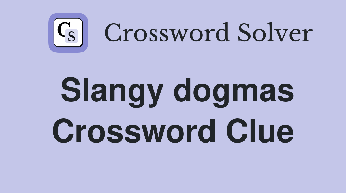 Slangy dogmas Crossword Clue Answers Crossword Solver