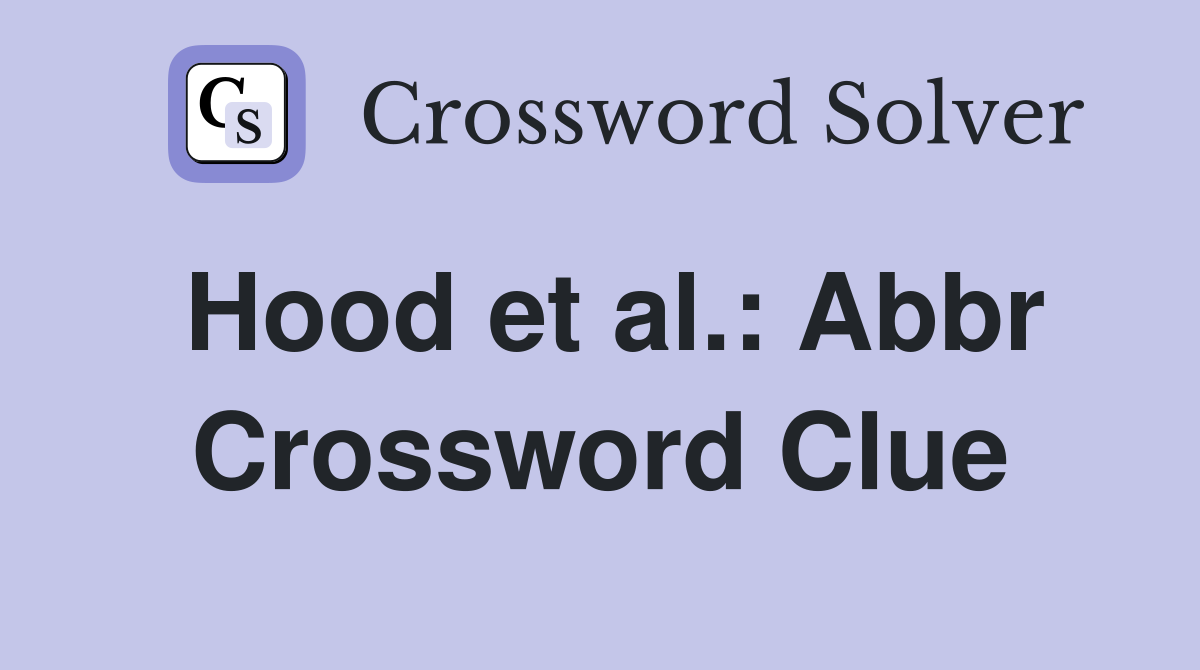 Hood et al : Abbr Crossword Clue Answers Crossword Solver