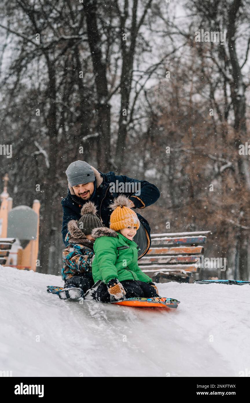 Children Kids Sledding Toboggan Sled Snow Winter Stock Image Image