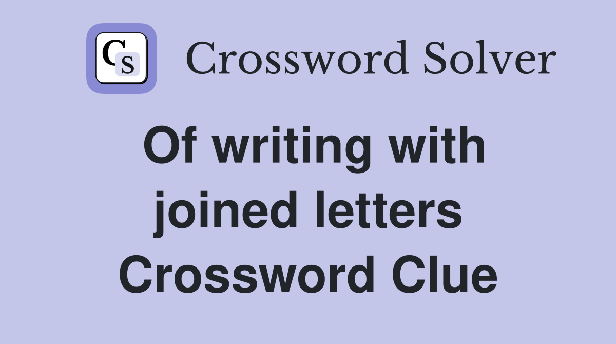 Of writing with joined letters Crossword Clue Answers Crossword Solver