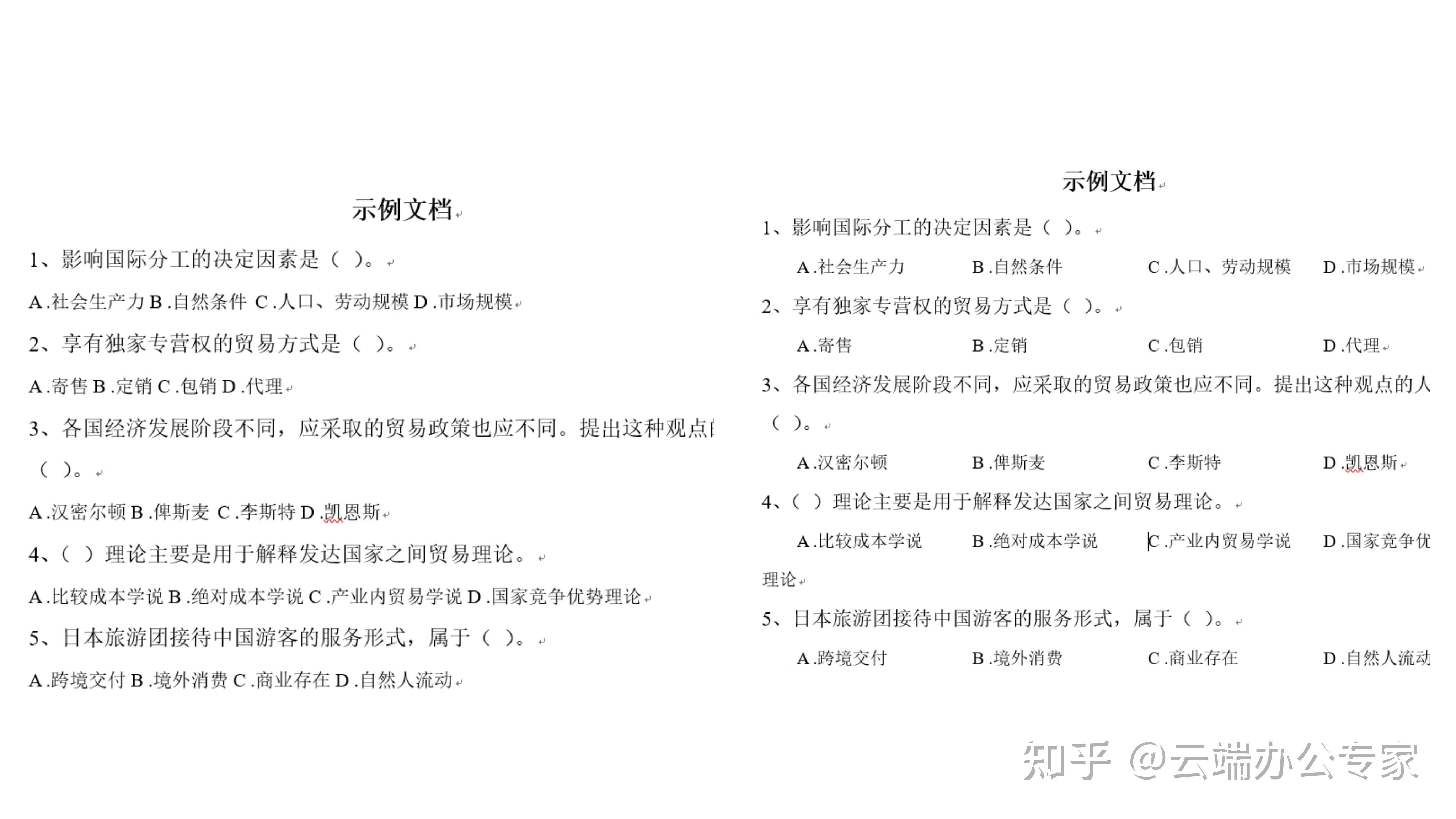 如何让文档中的ABCD选项对齐 知乎
