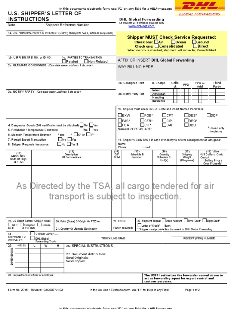 Create a Shipper s Letter of Instruction (SLI) Free Template IncoDocs