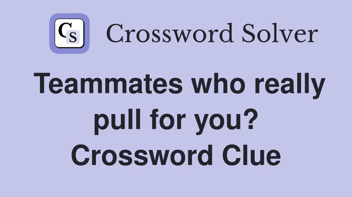 Teammates who really pull for you? Crossword Clue Answers Crossword
