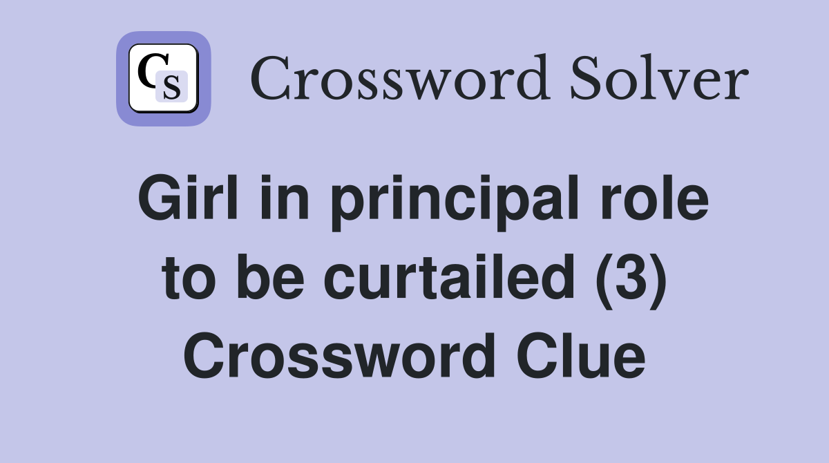 Girl in principal role to be curtailed (3) Crossword Clue Answers