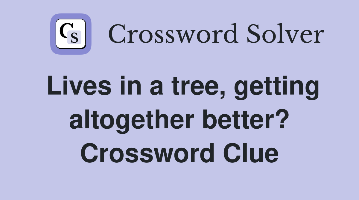 Lives in a tree getting altogether better? Crossword Clue Answers