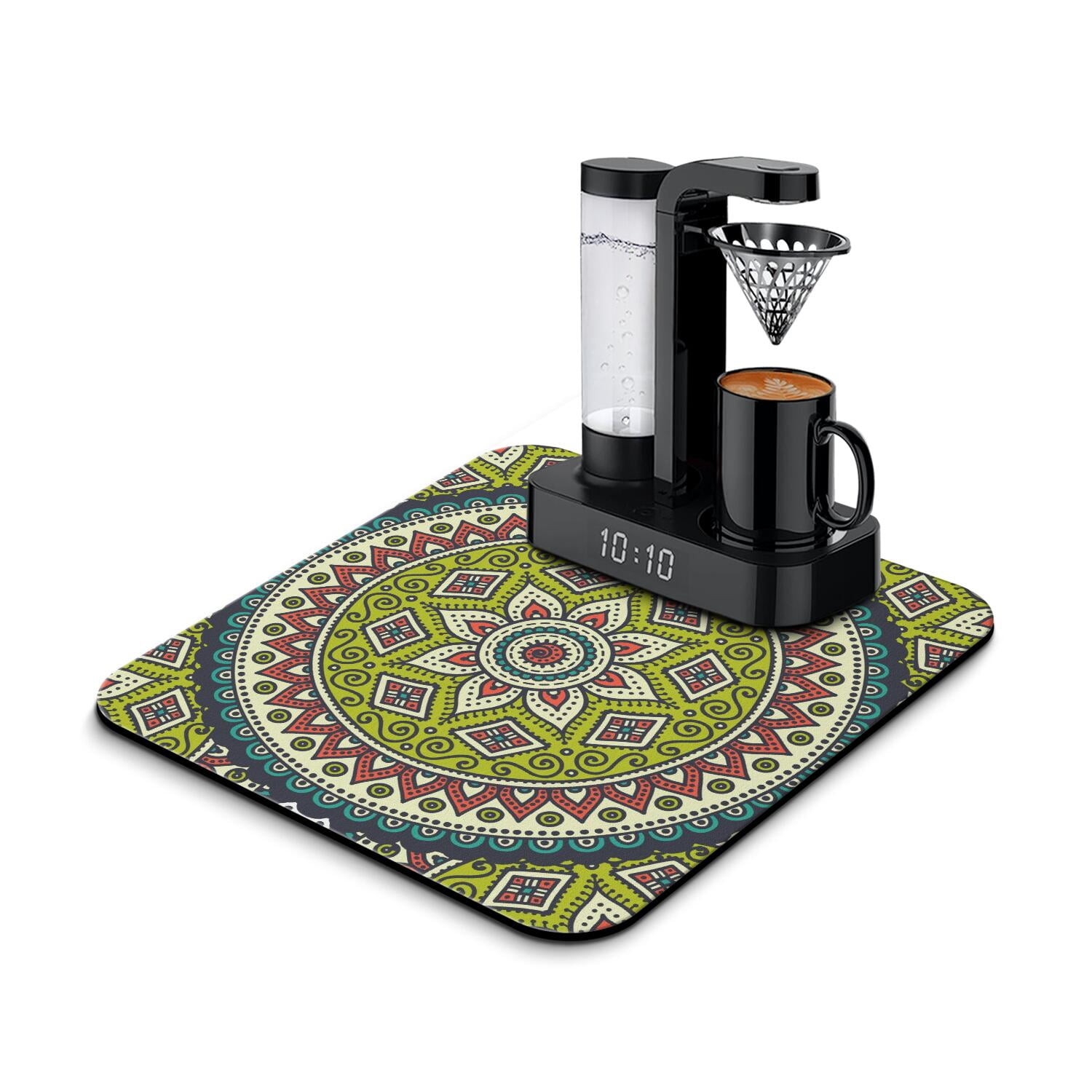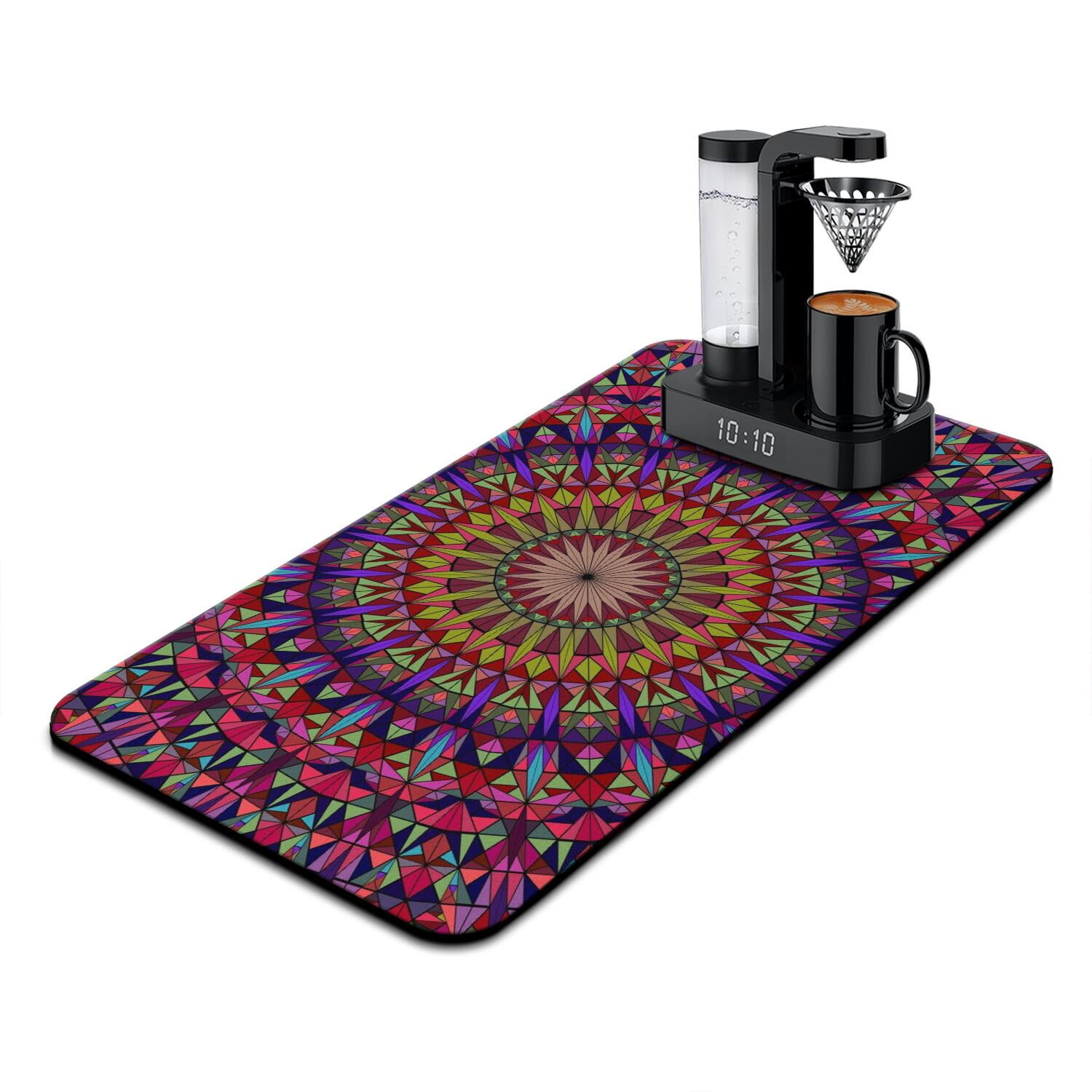 Abstract Coffee Bar Mat Trippy Mandala Design Non Slip Mat for
