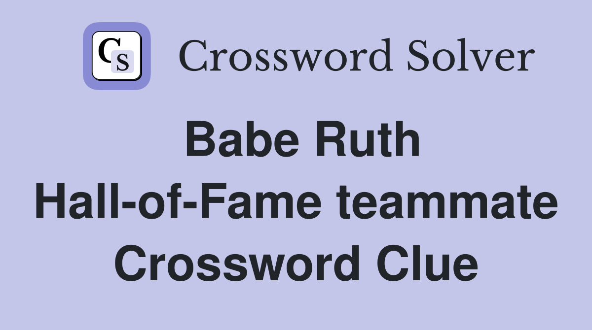 Ruth Hall of Fame teammate Crossword Clue Answers Crossword Solver