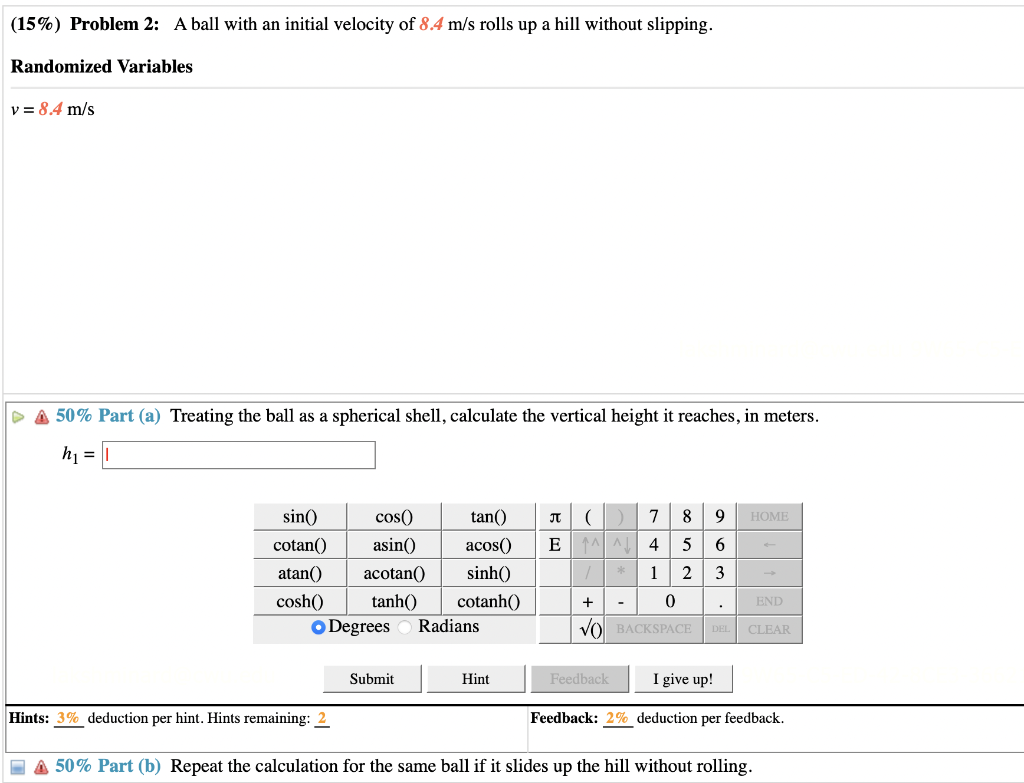 Solved (15 #92 %) Problem 2: A ball with an initial velocity of Chegg com