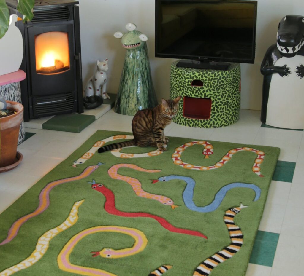 Snakes in the Grass Rug is Vibrant Tapestry of Slithering Reptiles