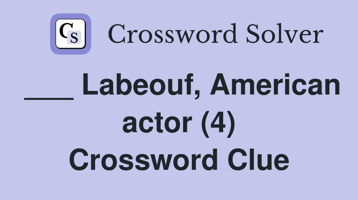Labeouf American actor (4) Crossword Clue Answers Crossword Solver