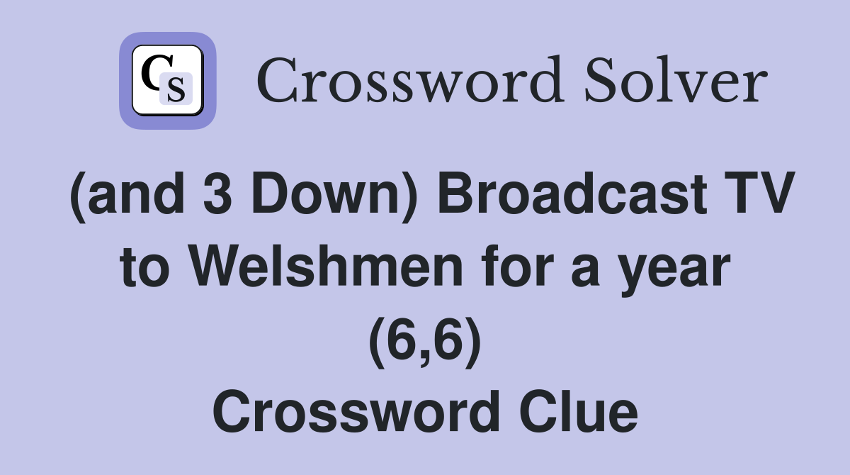 (and 3 Down) Broadcast TV to Welshmen for a year (6 6) Crossword Clue