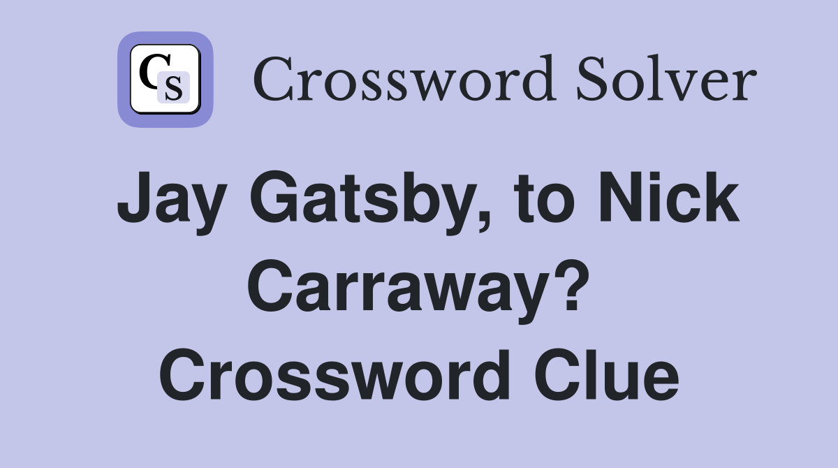 Jay Gatsby to Nick Carraway? Crossword Clue Answers Crossword Solver
