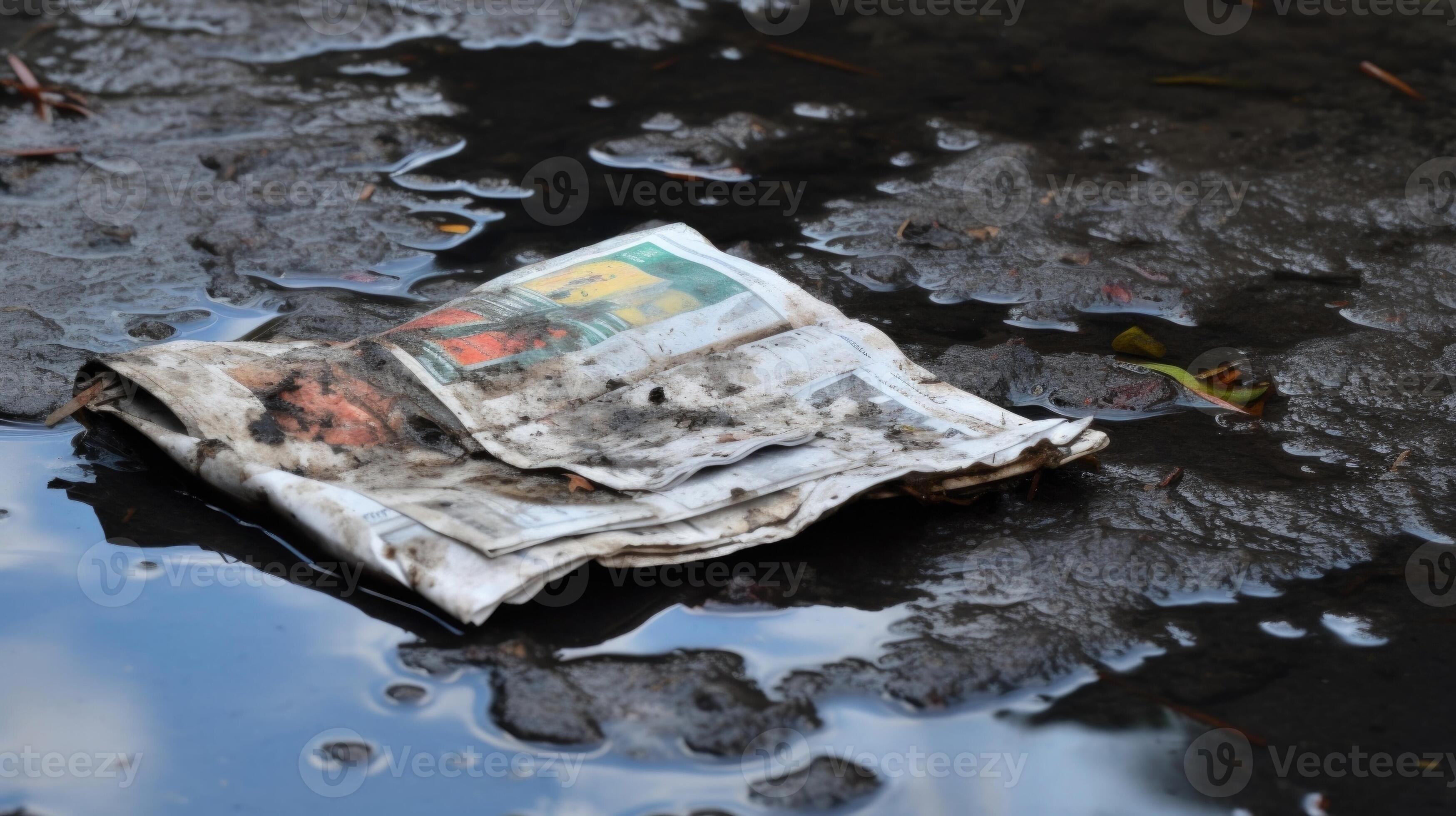 A sad sight of a once vibrant newspaper now left to soak in a puddle