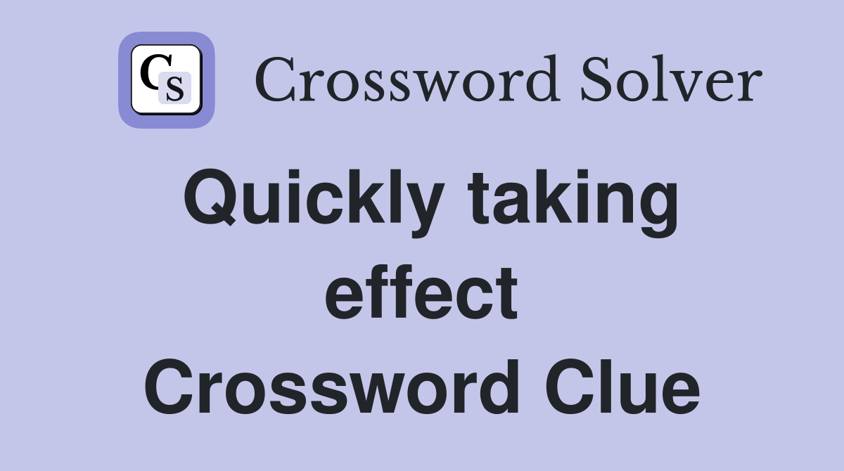 Quickly taking effect Crossword Clue Answers Crossword Solver