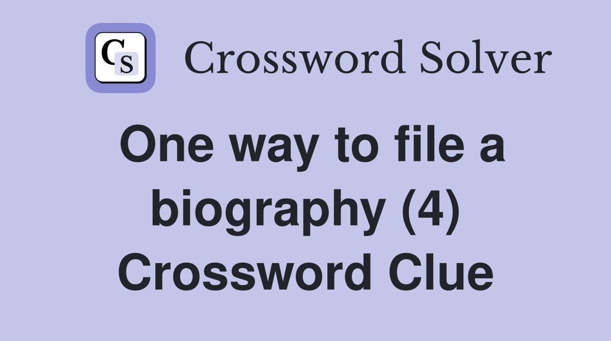 One way to file a biography (4) Crossword Clue Answers Crossword Solver