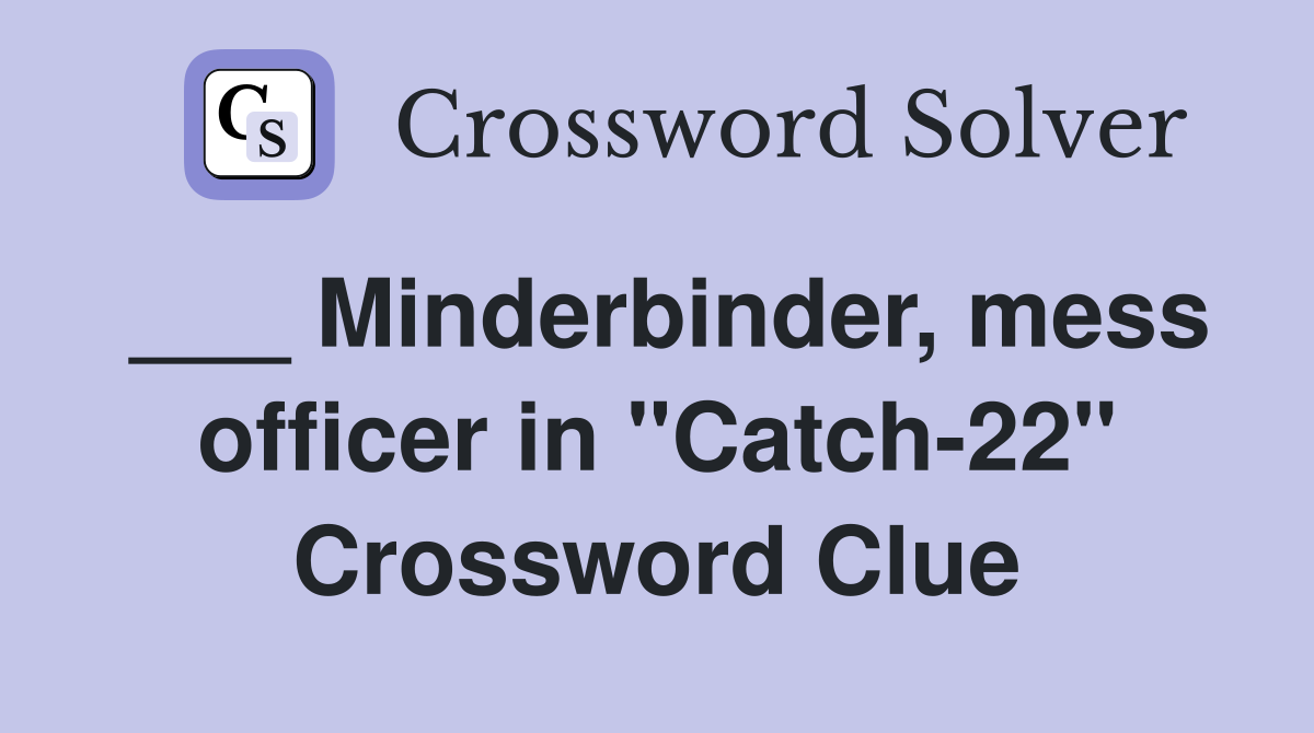 Minderbinder mess officer in quot Catch 22 quot Crossword Clue Answers