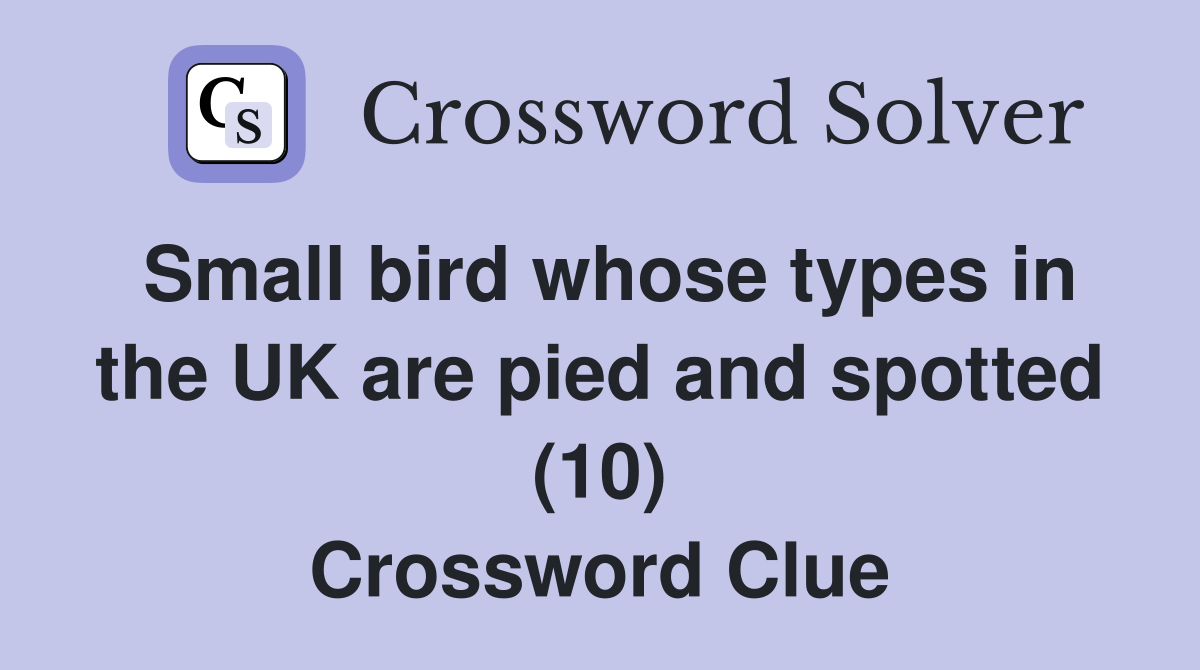 Small bird whose types in the UK are pied and spotted (10) Crossword