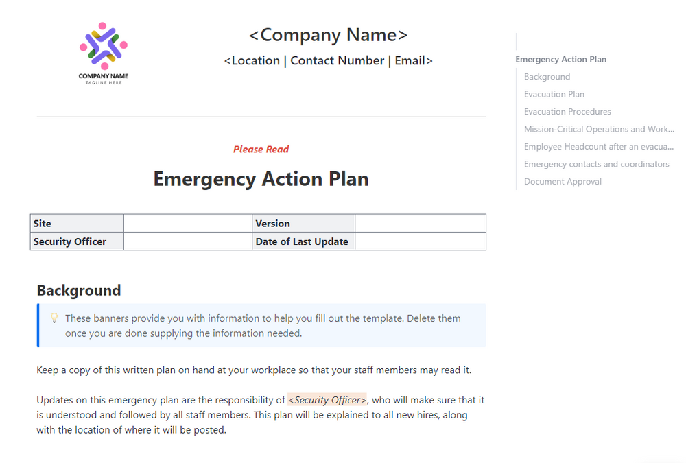 Company Emergency Plan Template