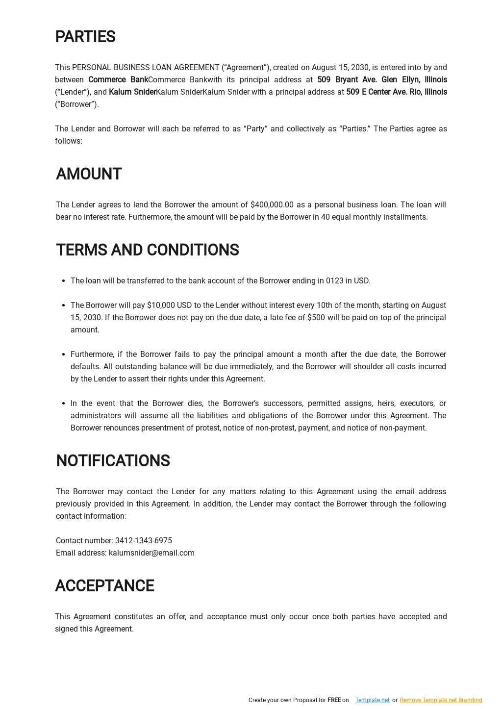 Personal Business Loan Agreement Template in Word Google Docs Pages
