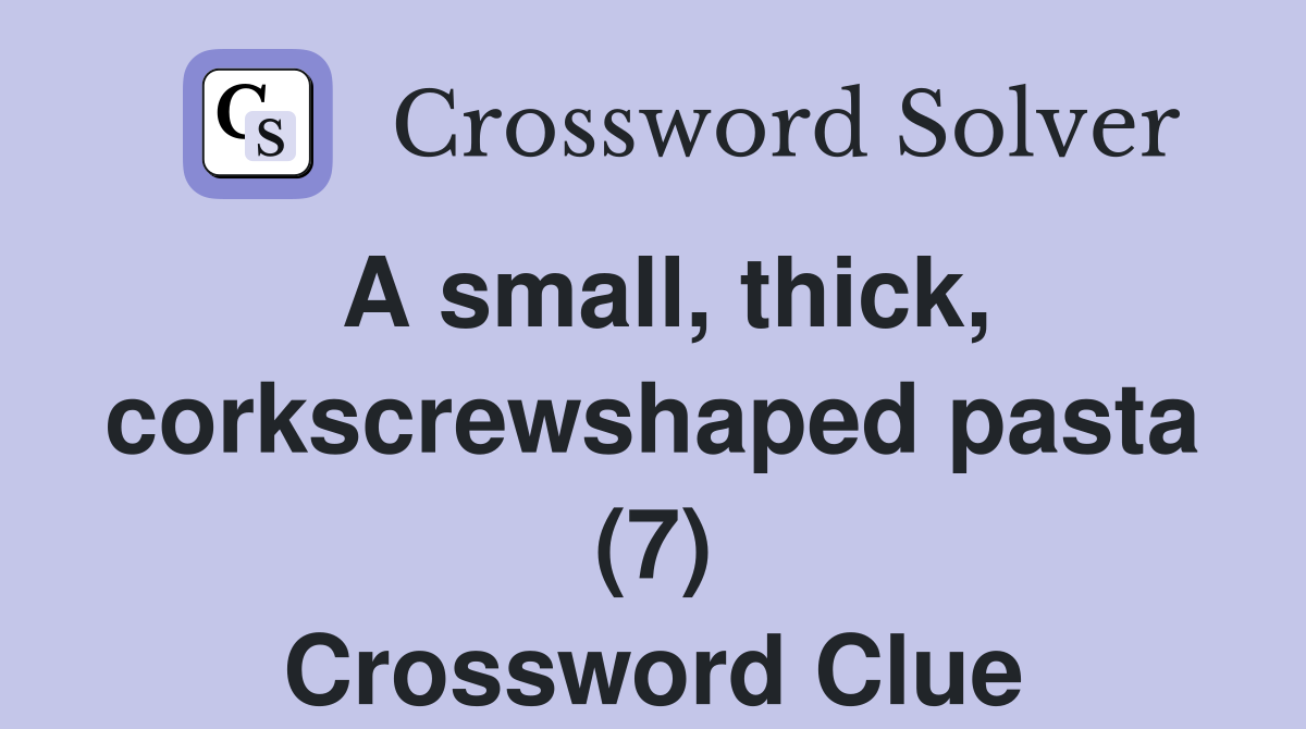 A small thick corkscrewshaped pasta (7) Crossword Clue Answers