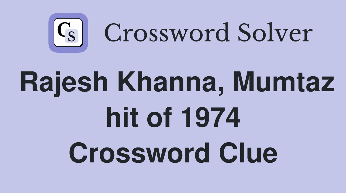 Rajesh Khanna Mumtaz hit of 1974 Crossword Clue Answers Crossword