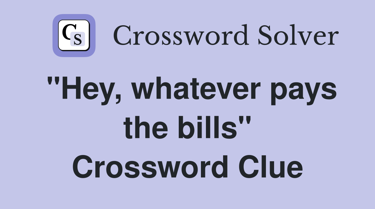 quot Hey whatever pays the bills quot Crossword Clue Answers Crossword Solver