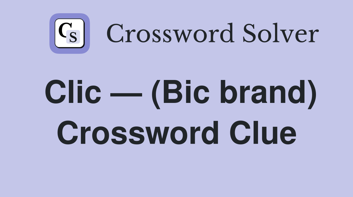 Clic (Bic brand) Crossword Clue Answers Crossword Solver