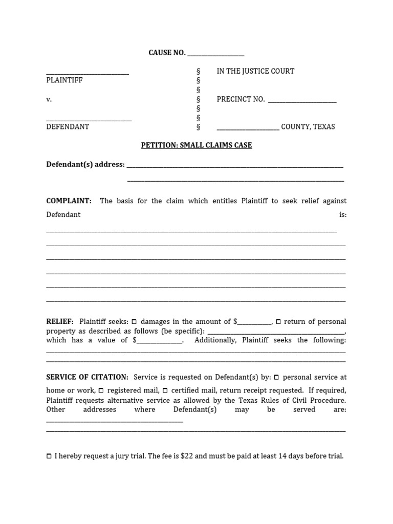 Harris County Small Claims Court Forms To Printable Printable Forms
