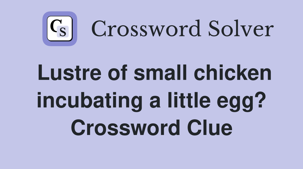 Lustre of small chicken incubating a little egg? Crossword Clue
