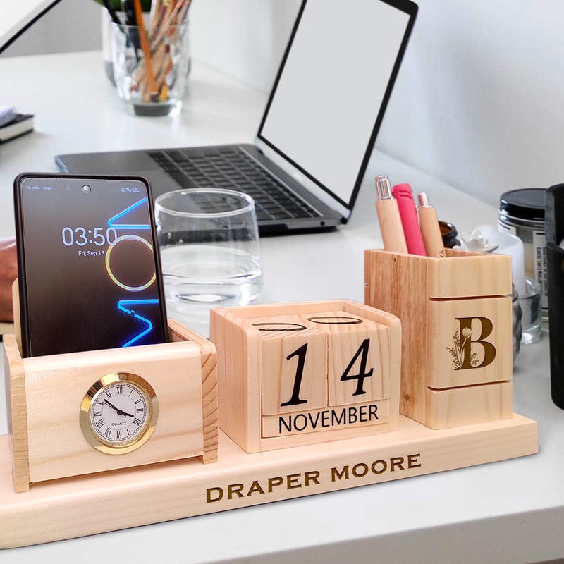 Calendar on Desk with Pen Stand Custom Tabletop Space Saver Nutcase