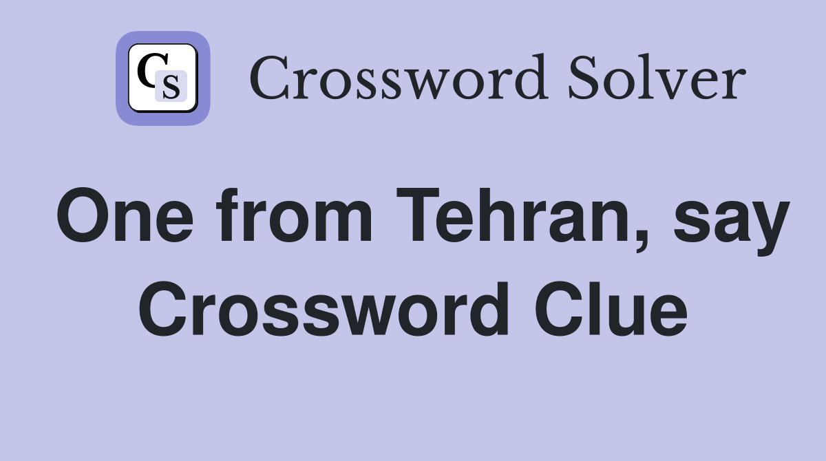 One from Tehran say Crossword Clue Answers Crossword Solver