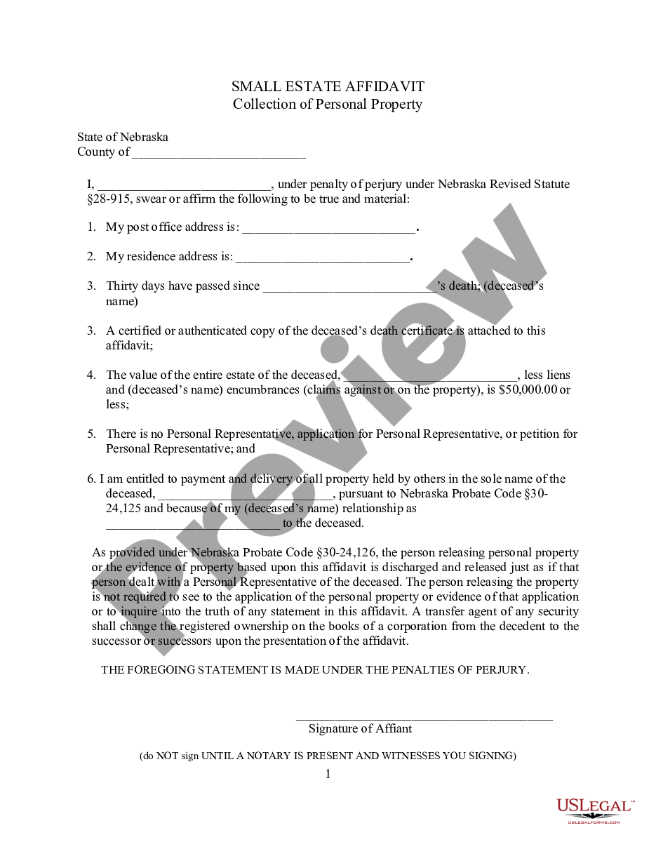 Small Estate Affidavit Form Nebraska 2022 PrintableAffidavitForm com