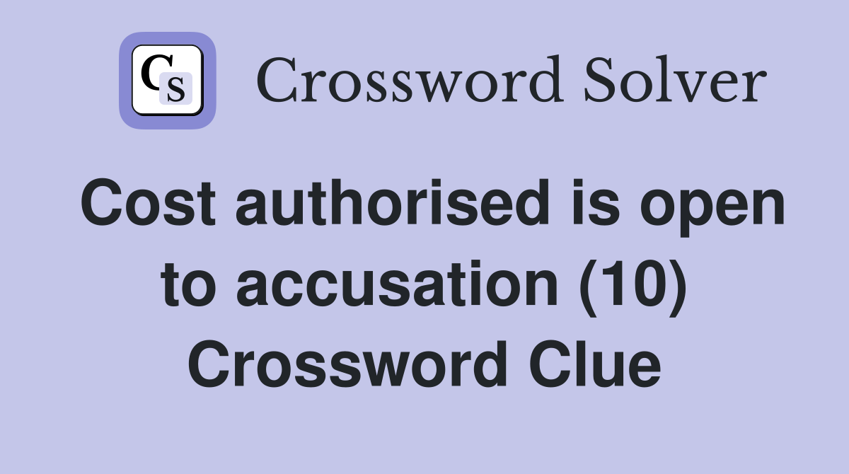 Cost authorised is open to accusation (10) Crossword Clue Answers