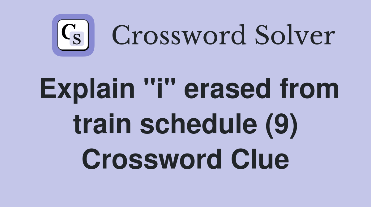 Explain quot i quot erased from train schedule (9) Crossword Clue Answers