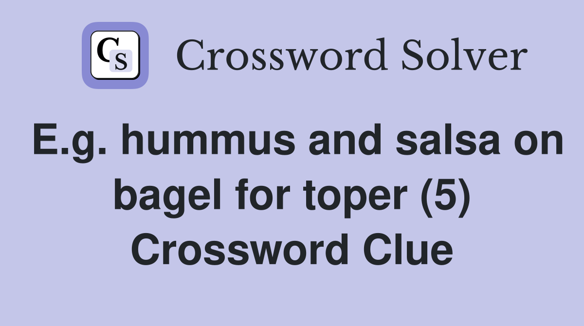 E g hummus and salsa on bagel for toper (5) Crossword Clue Answers