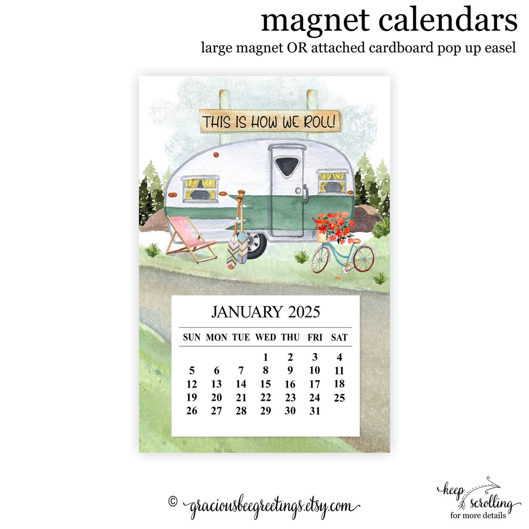 2025 Camper Fridge Magnet Calendar 2025 RV Desk Calendar 2025 Retro