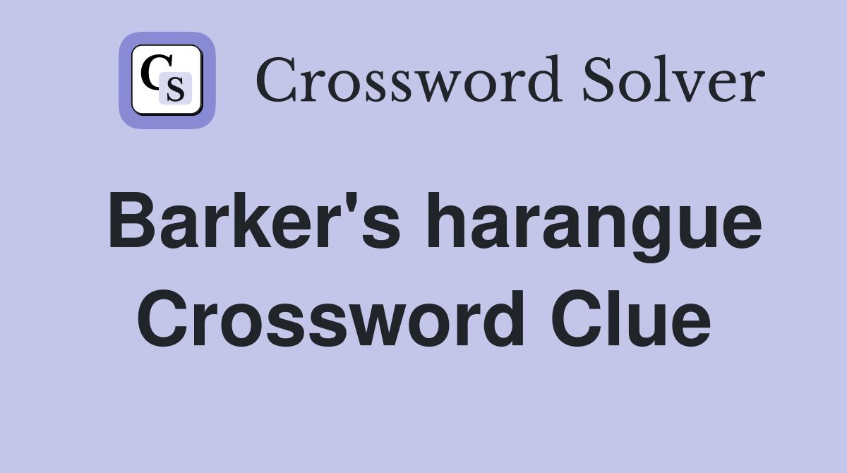 Barker #39 s harangue Crossword Clue Answers Crossword Solver