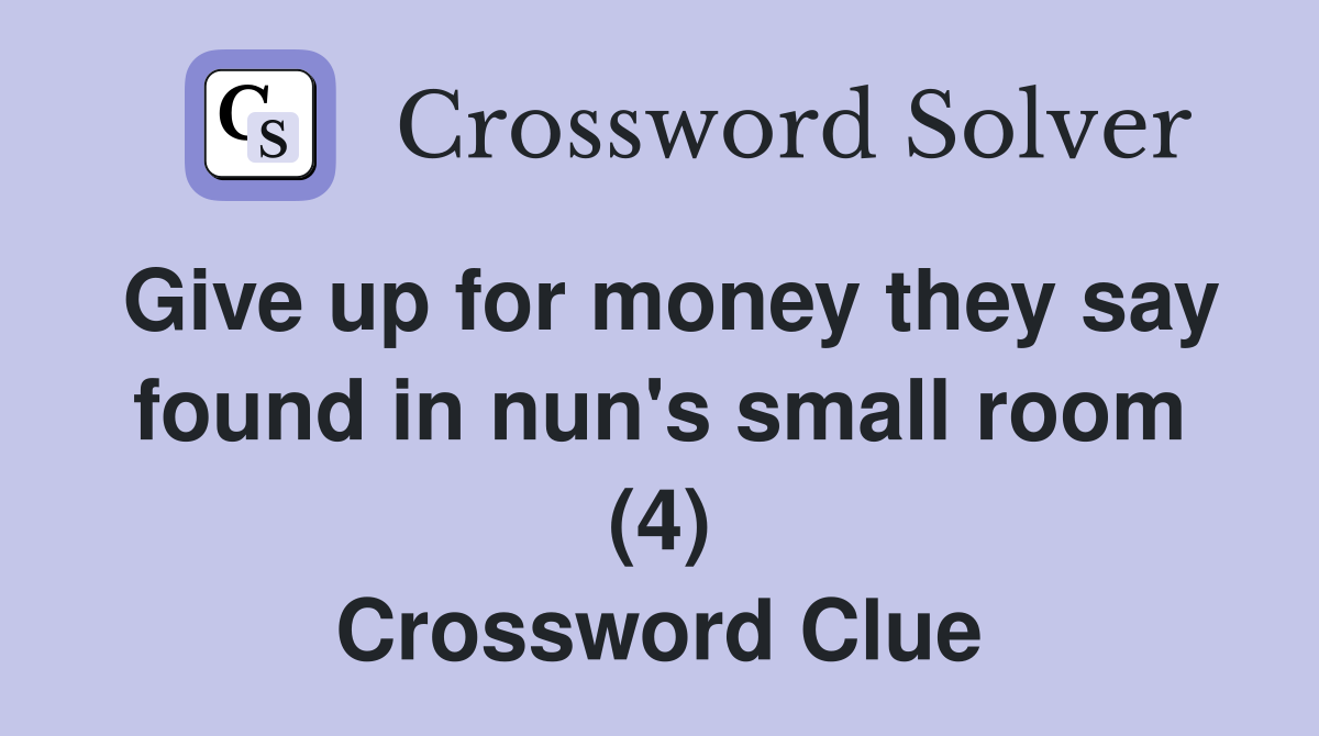 Give up for money they say found in nun s small room (4) Crossword