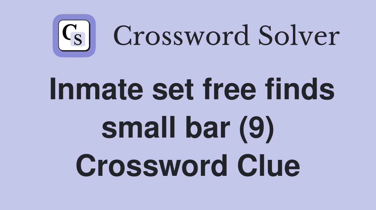 Inmate set free finds small bar (9) Crossword Clue Answers