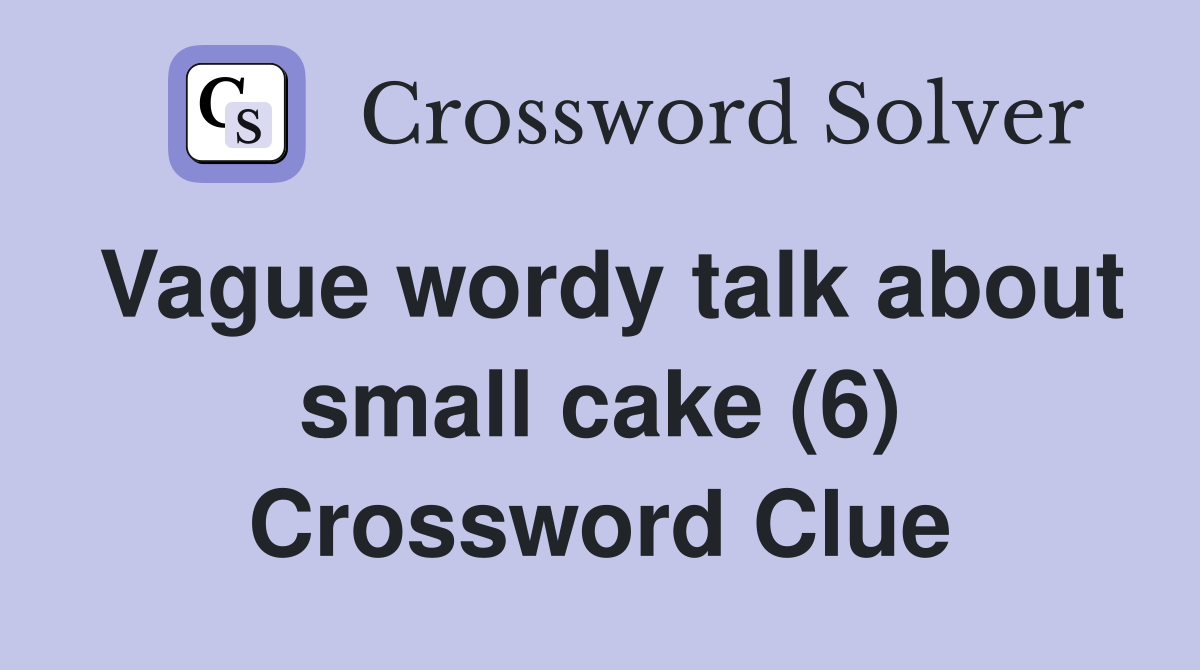 Vague wordy talk about small cake (6) Crossword Clue Answers