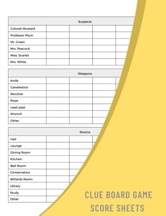 Clue Board Game Score Sheets: Keep Track Of All The Scores During Your