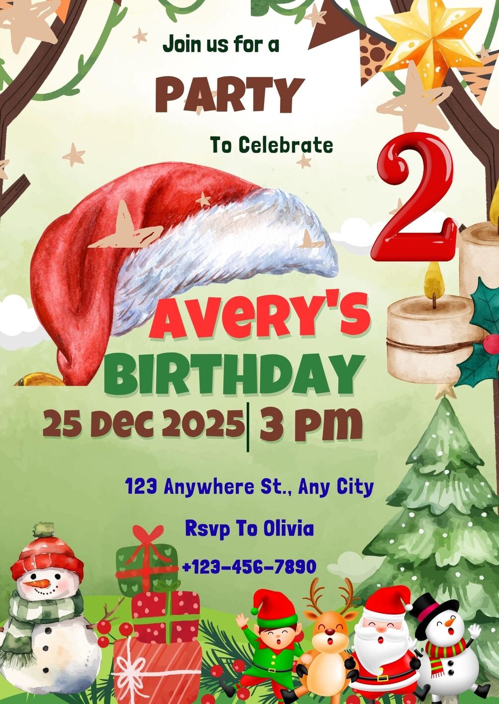 Jolly Christmas Birthday Invitation Festive Winter Wonderland Party