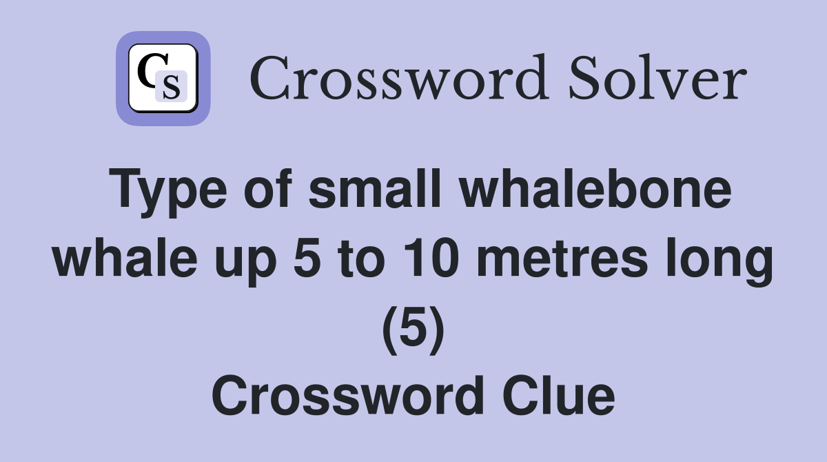 Type of small whalebone whale up 5 to 10 metres long (5) Crossword