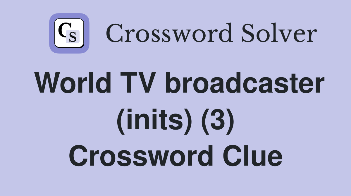 World TV broadcaster (inits) (3) Crossword Clue Answers Crossword