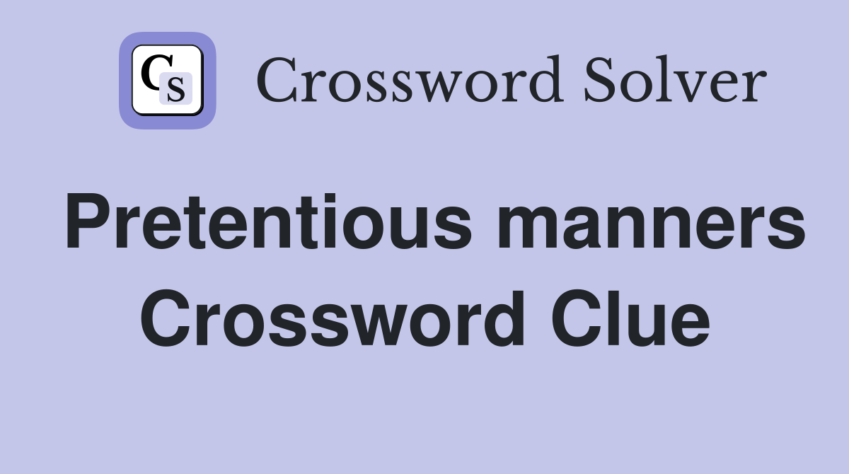 Pretentious manners Crossword Clue Answers Crossword Solver